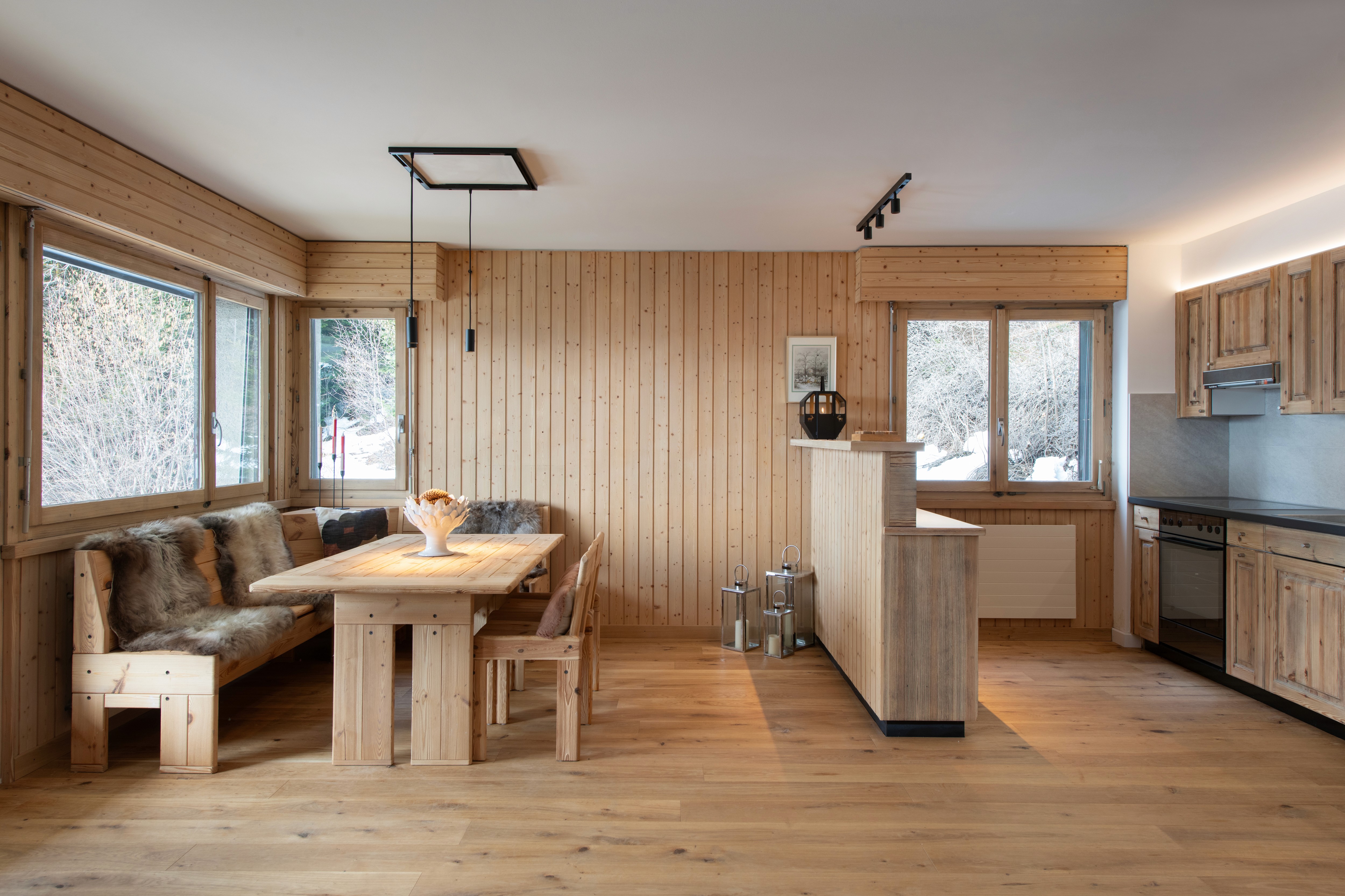 Lighting design for this alpine chalet focused on enhancing the warmth, intimacy, and architectural character of the mountain retreat. EMY developed a layered lighting approach combining soft ambient illumination, concealed architectural lighting, and precise accent lighting to highlight natural materials such as wood, stone, and textured plaster.