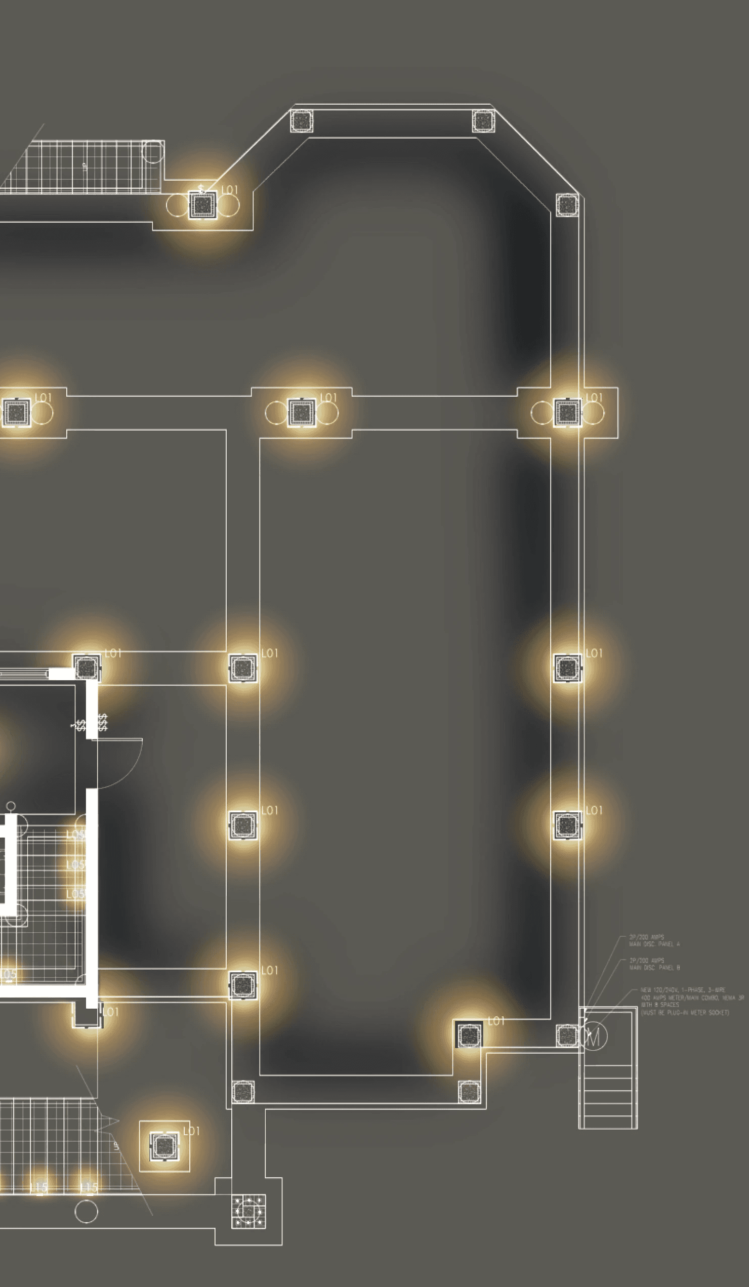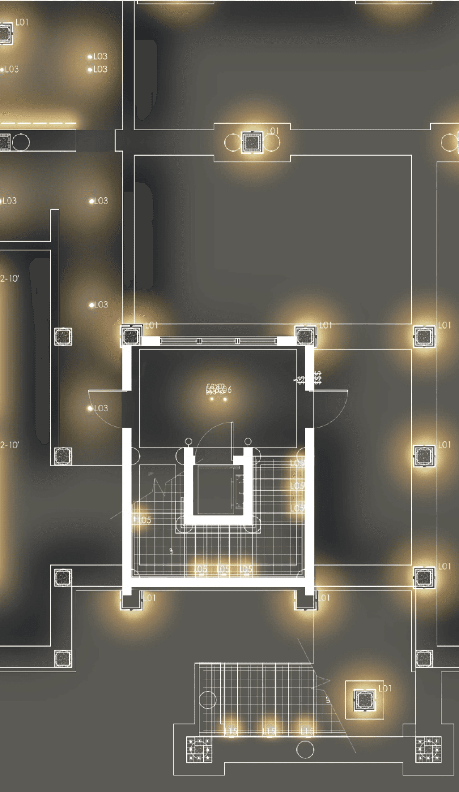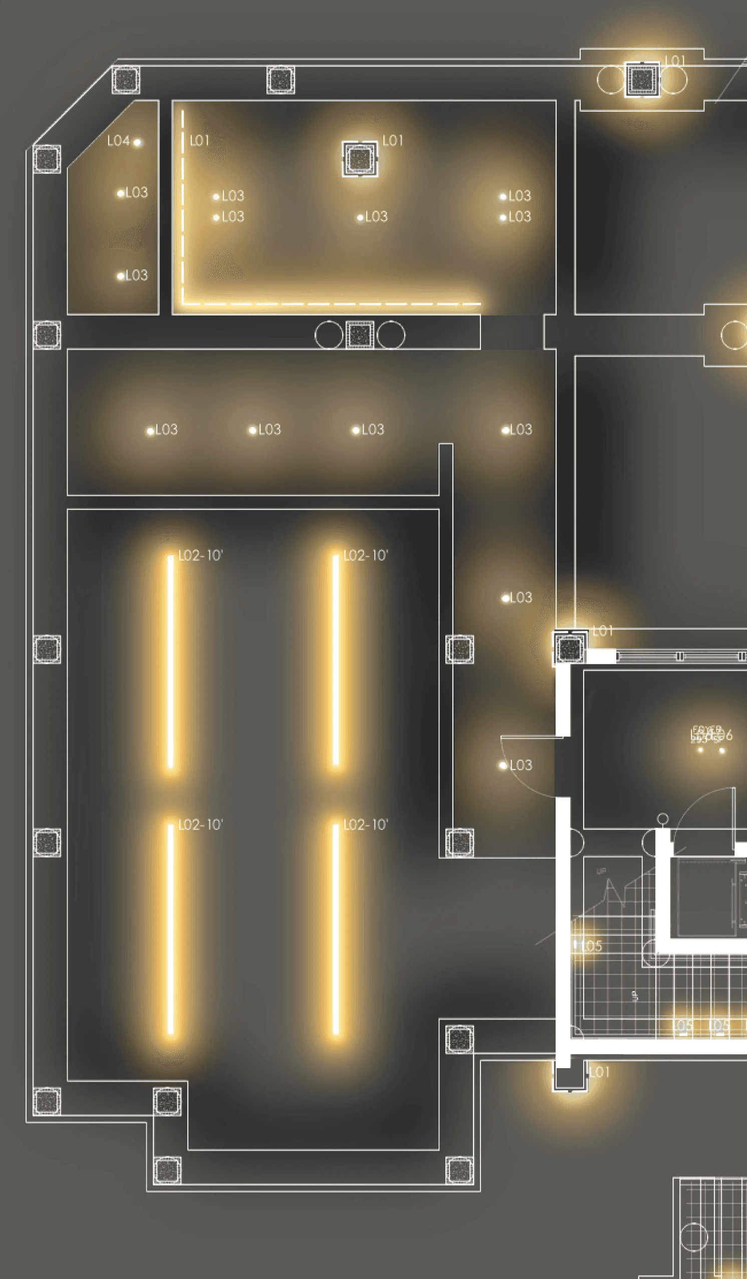 Layered, predominantly indirect lighting elements are thoughtfully integrated