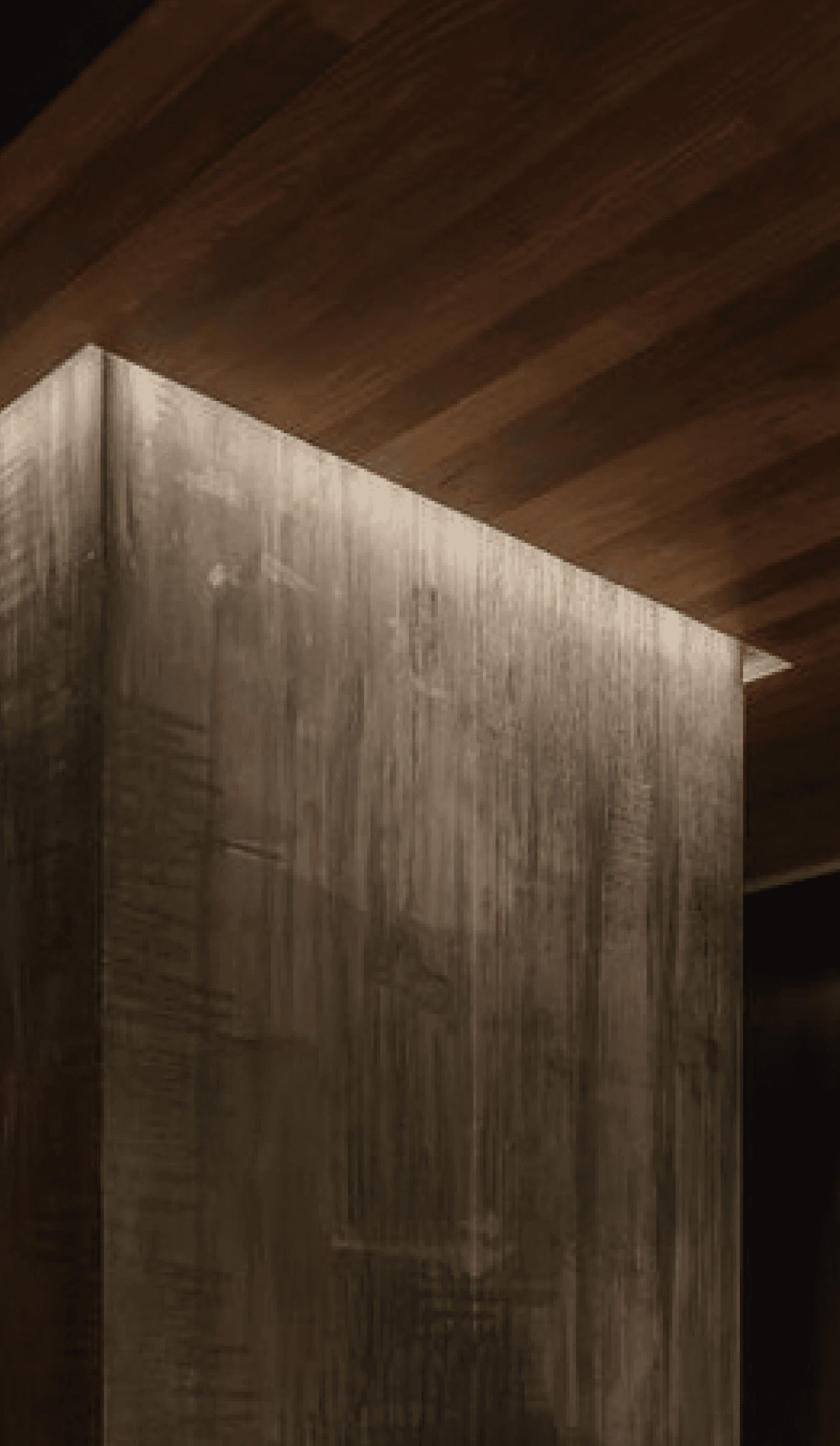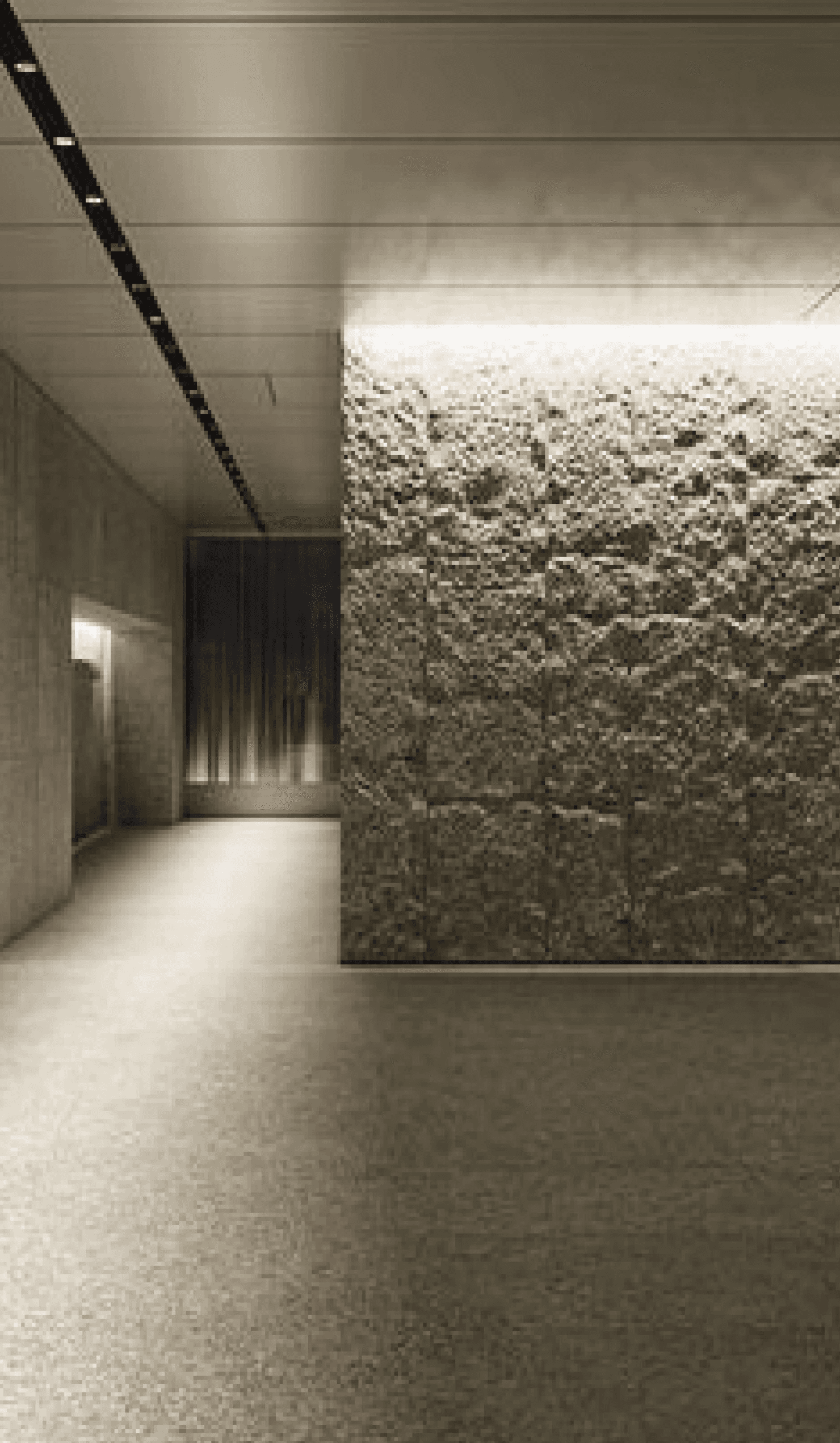 ceilings recede into quiet darkness, defined by low-glare illumination that never